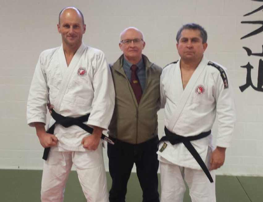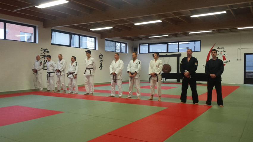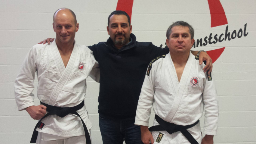 laureaten: Adnan en Bram met een tevreden sensei, John